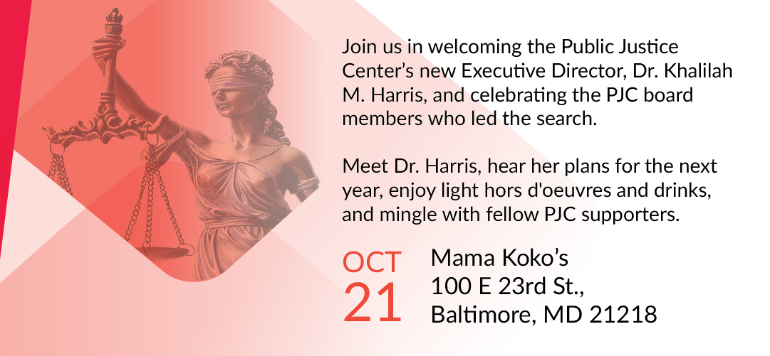 Join us in welcoming the Public Justice Center’s new Executive Director, Dr. Khalilah M. Harris, and celebrating the PJC board members who led the search.